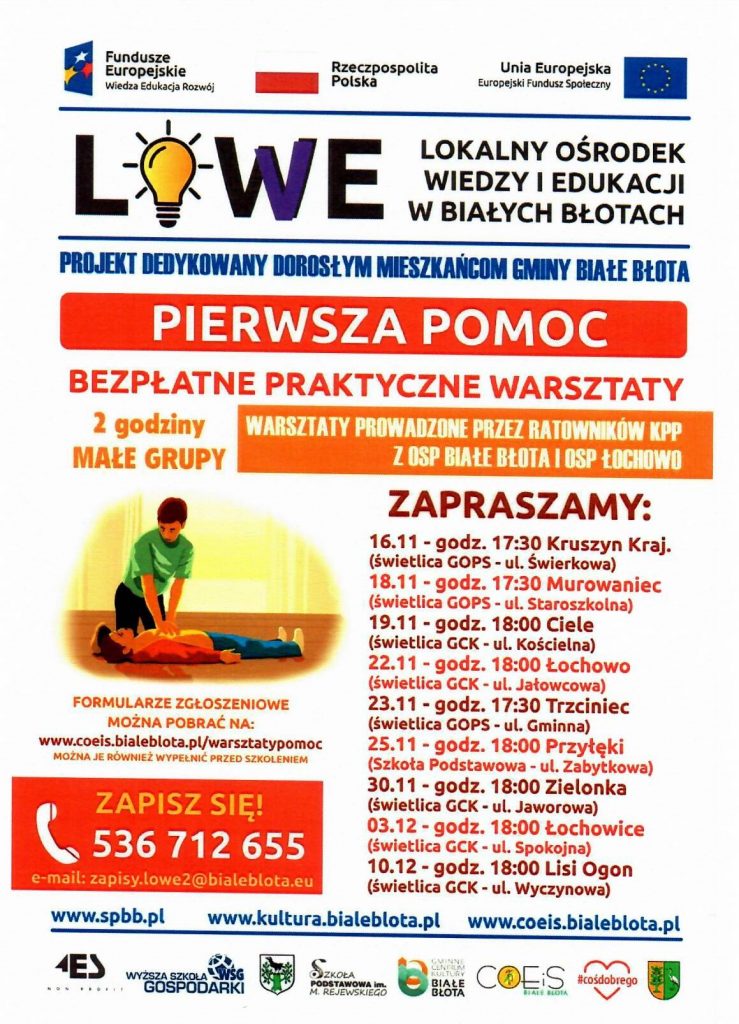 LOKALNY OŚRODEK WIEDZY I EDUKACJI W BIAŁYCH BŁOTACH ZAPRASZA DO UDZIAŁU W BEZPŁATNYCH WARSZTATACH “LOWE” . Warsztaty realizowane są na terenie Gminy Białe – szczegóły na plakatach.