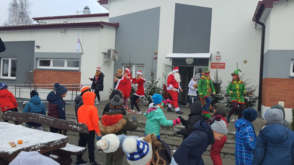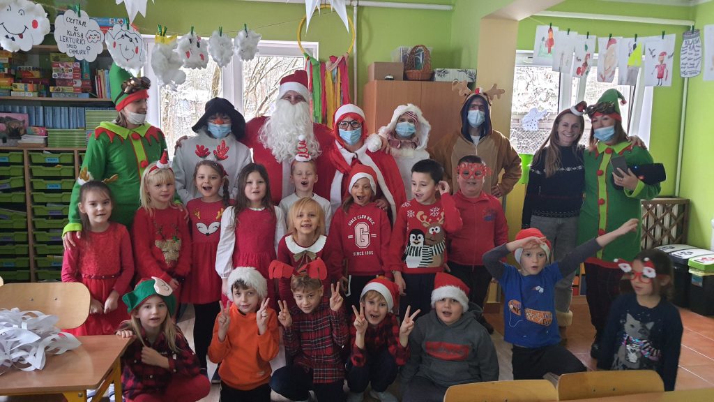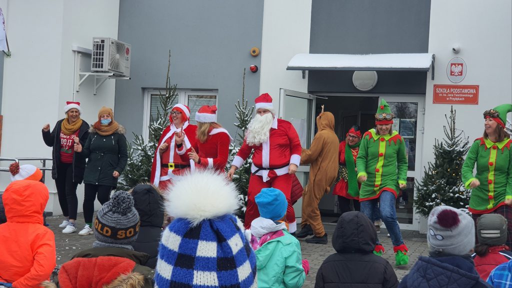 Jak nie dać się pandemii?- Wiedzą uczniowie i nauczyciele w Przyłękach. Już po raz drugi grono pedagogiczne zadbało, by uczniom 6. grudnia zrobiło się cieplej na serduchach. Pracownicy szkoły przygotowali film dla swoich podopiecznych: “Mikołaj w pandemii – reaktywacja” oraz występ zumby na żywo w ich wykonaniu. Samorząd Uczniowski w formie on-line przygotował quiz mikołajkowy oraz turniej tenisa stołowego, który przysporzył wszystkim uczestnikom wiele radości.