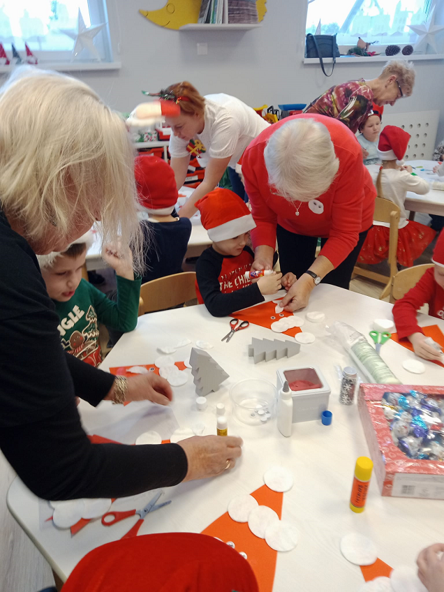Po powitaniu wszystkich uczestników warsztatów przez dyrektor Szkoły Podstawowej w Przyłękach – Karolinę Pasieczną–Szpulecką, wicedyrektor szkoły – Emilię Mrozowicz oraz wychowawczynie grupy – Natalię Stan i Agnieszkę Celmer, przedszkolaki zaśpiewały zgromadzonym gościom piosenkę „O dobrym Świętym Mikołaju” i pastorałkę „Osiołek” oraz zaprezentowały instrumentację do utworu „Jingle Bells”. Następnie przy pomocy seniorek przystąpiły do wykonania mikołajkowej ozdoby świątecznej. Spotkanie to przebiegło we wspaniałej, świątecznej atmosferze i stanowiło niezwykłą okazję do integracji międzypokoleniowej.