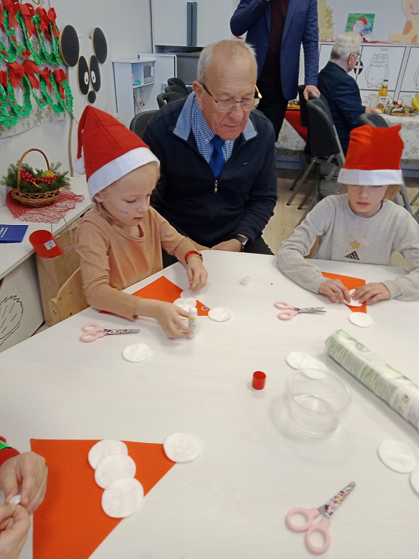 Tym razem spotkanie to miało charakter mikołajkowych warsztatów plastycznych dla przedszkolaków przygotowanych przez członkinie UTW w Zielonce. W wydarzeniu uczestniczyli również Andrzej Kubiak – dyrektor Wydziału Promocji, Kultury i Sportu Starostwa Powiatowego w Bydgoszczy, Henryk Sykut wraz z Anną Banaszek – wiceprzewodniczący Rady Gminy Białe Błota, Ilona Nowakowska – przewodnicząca Komisji Budżetu Rady Gminy Białe Błota, Danuta Wyrwas – przewodnicząca Koła Seniora „Wrzos” w Zielonce, Kamila Łączna – przewodnicząca UTW w Zielonce wraz z mężem Edmundem Łącznym oraz Sylwester Kołodziejski reprezentujący Kazimierzowski Uniwersytet Trzeciego Wieku w Bydgoszczy.