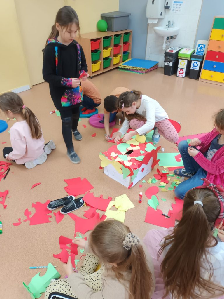 Następnie walentynkowi listonosze posegregowali pocztę i roznosili po klasach korespondencję od tajemniczych wielbicieli kierując je pod właściwy adres. Walentynkowe życzenia można było przesłać nie tylko swoim ukochanym, ale także lubianym przez nas koleżankom i kolegom oraz nauczycielom.