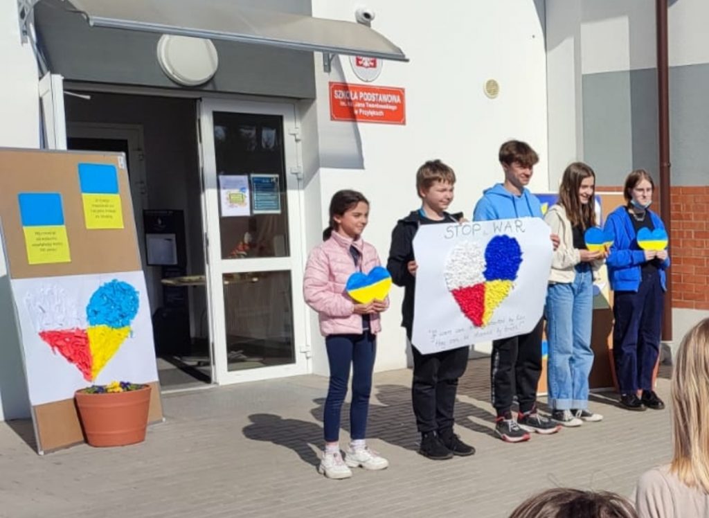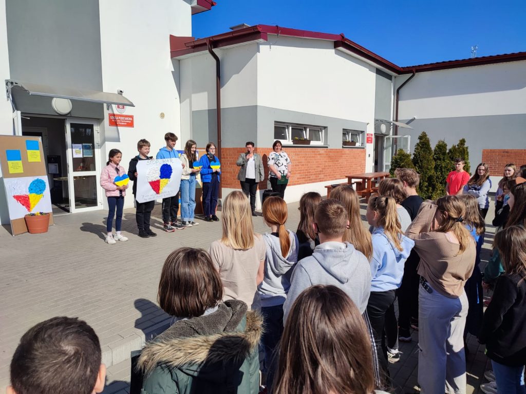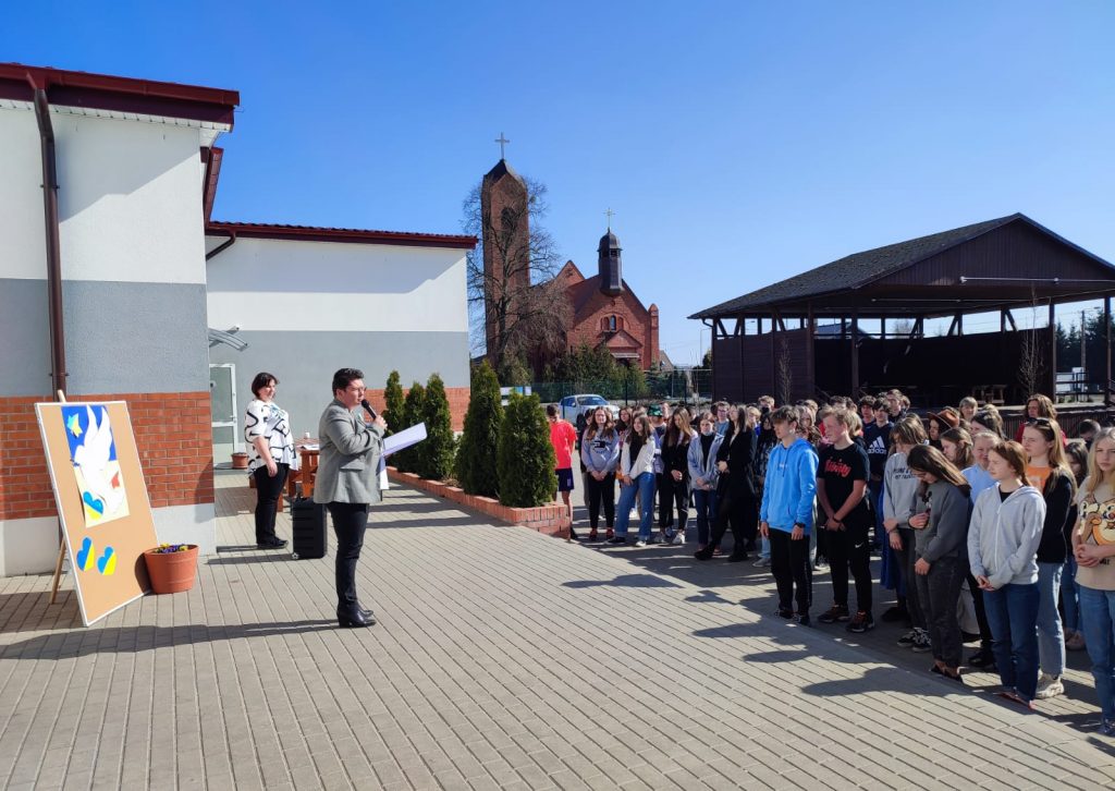 24 marca 2022 r.- miesiąc od rozpoczęcia rosyjskiej inwazji na Ukrainę, uczniowie Szkoły Podstawowej w Przyłękach uczcili minutą ciszy ofiary największej wojny XXI wieku.