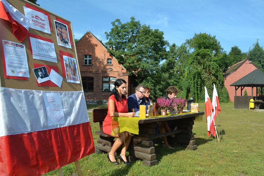 2 września br. już po raz piąty uczniowie SP w Przyłękach uczestniczyli w ogólnopolskiej akcji „Narodowe Czytanie”, ogłoszonej przez prezydenta Rzeczypospolitej Polskiej. W letniej scenerii, na boisku szkolnym, zgromadzili się uczniowie i nauczyciele, by wspólnie wsłuchiwać się w treść tegorocznej lektury – „Quo vadis” H. Sienkiewicza. Do akcji popularyzacji czytelnictwa, poprzez kontakt z prawdziwą wielką literaturą, przyłączyli się zaproszeni goście, którzy wspólnie czytali dla nas kluczowe fragmenty powieści.