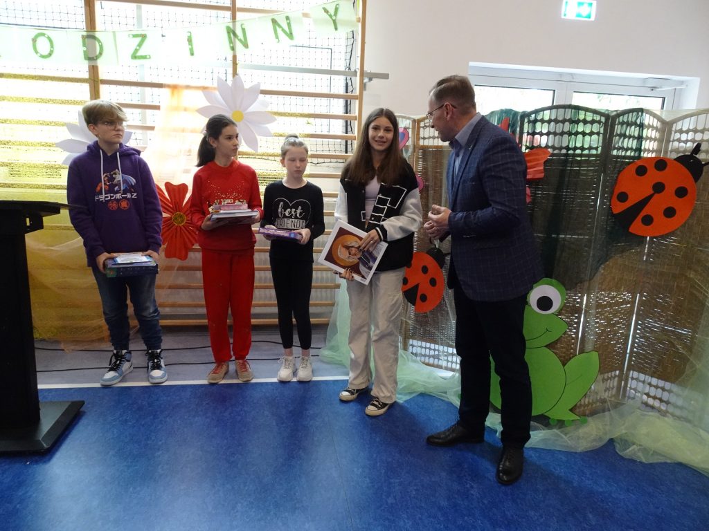 Uroczystość rozdania nagród poprzedził montaż słowny o życiu i twórczości ks. Jana Twardowskiego zaprezentowany przez uczniów klasy piątej.