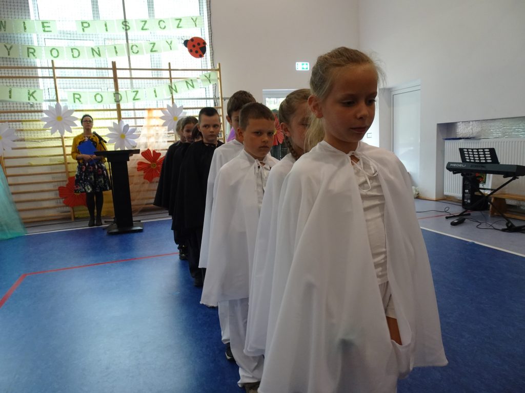Jak zawsze przy takich okazjach nie zabrakło wzruszających występów pociech dla swoich rodziców. Było uroczyste „Sto lat dla mamy i taty” od kl. „O”, tańce do utworów M. Jackson’a i „Jerusalema” w wykonaniu kl. II i Ib, „Wyprawa do ZOO” kl. 1a, etiuda taneczna „Dobro zwycięża” do piosenki „Mamo, tyś płakała” w wykonaniu uczennic z 5, 7 i 8 klasy, Amelia Sowa dała krótki koncert na keyboardzie a Lena Kasprzyk zaśpiewała “Wierną, odważną i prawą”. Sądząc po burzy oklasków, mali artyści oczarowali widownię.
