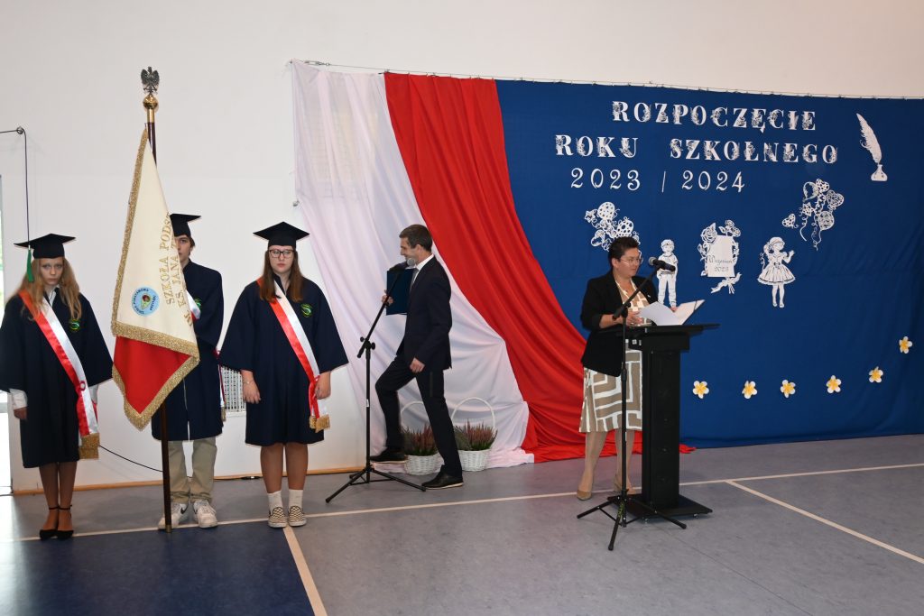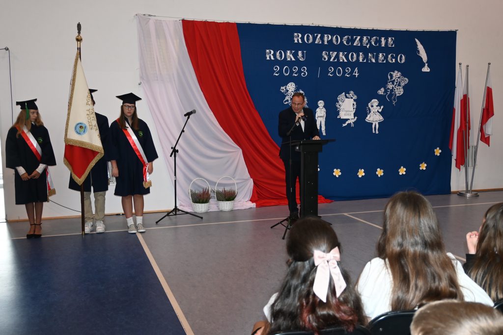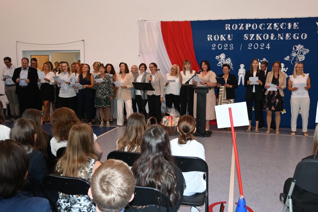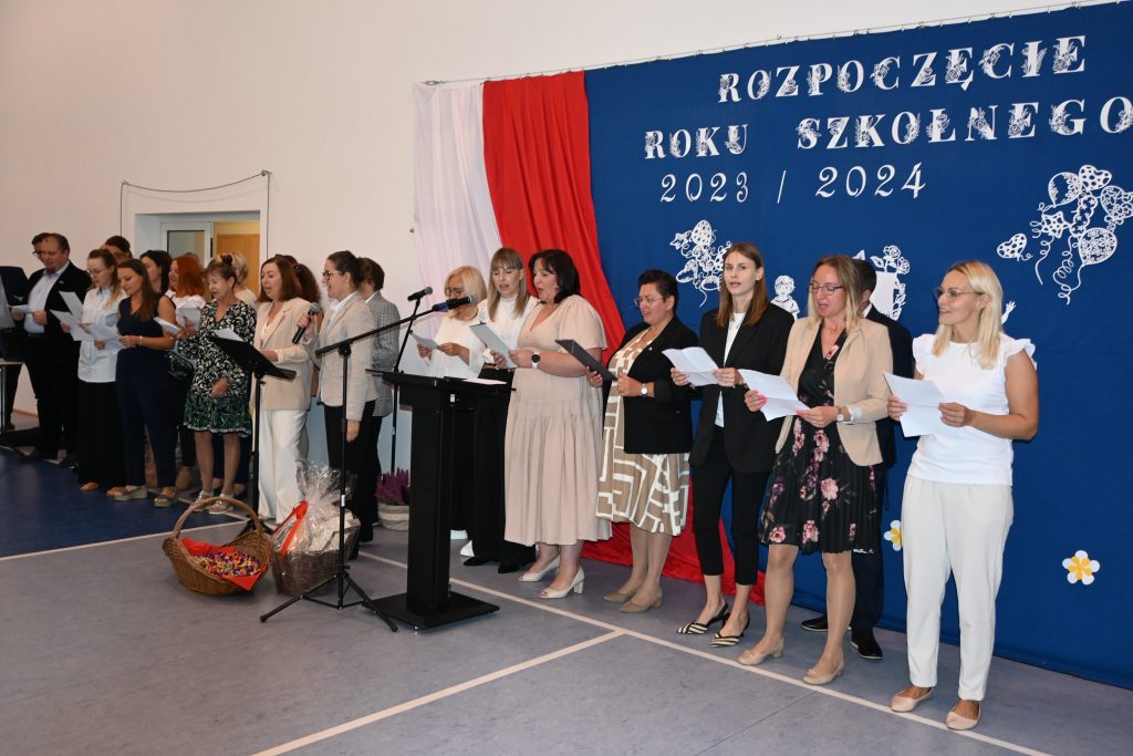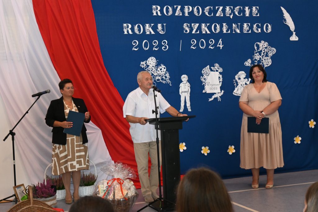 Z mównicy padło wiele ciepłych słów, miłych życzeń wytrwałości w pracy i gratulacji za dotychczasowe działania i osiągnięcia. Było podniośle i uroczyście, powitano nowych pracowników i pożegnano tych, którzy odeszli na zasłużoną emeryturę. Wieloletni pracownik szkoły – pan Jan Górecki, swoim zwyczajem obdarował wszystkich uczniów słodkimi cukierkami.