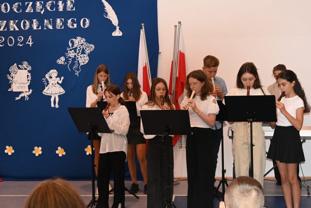 Czas umilił występ Szkolnego Koła Fletowego pod batutą pani Małgorzaty Ziółkowskiej. Wszyscy z uśmiechami na twarzach powitali nowy rok, lecz z łezką w oku pożegnali wakacyjną labę.