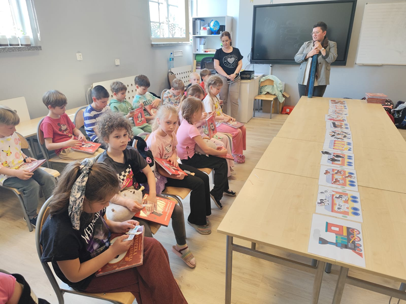 Wydarzenie rozpoczęło się od wspólnego czytania wiersza „Lokomotywa” Juliana Tuwima, który posłużył jako inspiracja do zabawy – uczniowie, słuchając tekstu, pomagali „zapełniać wagony” ilustracjami przedstawiającymi elementy pojawiające się w wierszu. Każdy wagon został „załadowany” z odpowiednim rytmem i humorem, co wprowadziło wszystkich w pogodny nastrój.