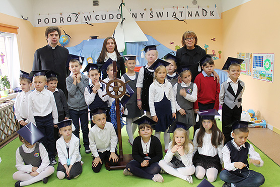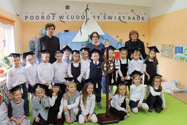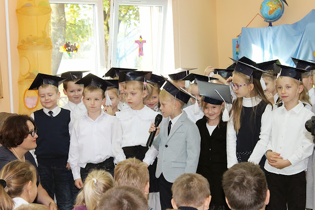 Bardzo dziękuję Rodzicom za zaangażowanie w zorganizowanie dzieciom poczęstunku oraz rekwizytów do scenografii a Radzie Rodziców za sfinansowanie zakupu biretów i dyplomów pamiątkowych.