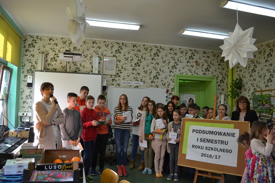 Jeszcze nie tak dawno uczniowie rozpoczynali nowy rok szkolny, a już przyszedł czas na pierwsze podsumowanie pracy. W związku z kończącym się pierwszym semestrem roku szkolnego 2016/17 w dniu 27.01.2017 r . odbyło się uroczyste podsumowanie zmagań. Dla uczniów klasy czwartej był to czas dużych zmian, które zakończyły się powodzeniem.Klasy starsze także odniosły ogromne sukcesy edukacyjne, sportowe i społeczne. Wręczone zostały nagrody i wyróżnienia dla uczniów , którzy osiągnęli największe sukcesy.