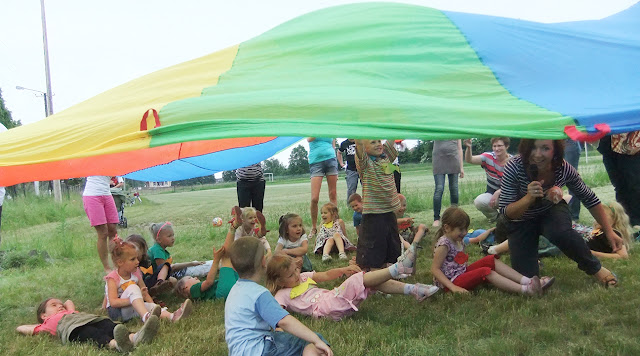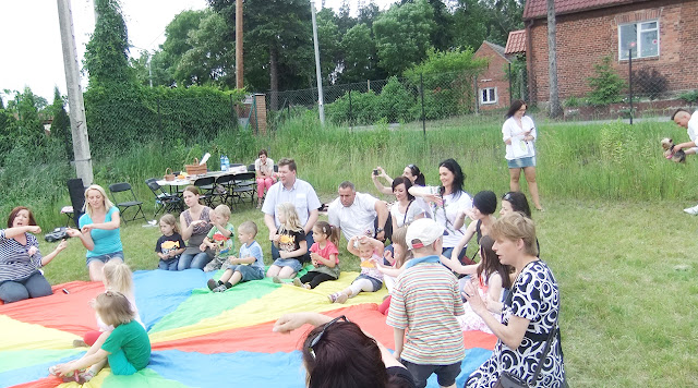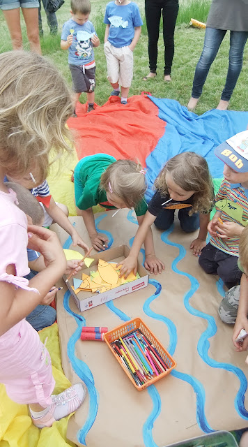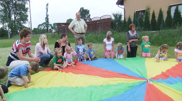 Po oficjalnej części wychowawczynie zabrały dzieci i rodziców na „wyprawę morską”, tęczowym statkiem – kolorową chustą. Podczas rejsu majtkowie (dzieci i rodzice) musieli posłusznie wykonywać wszystkie zadania: śpiewanie szant, łowienie ryb, sterowanie statkiem i inne.