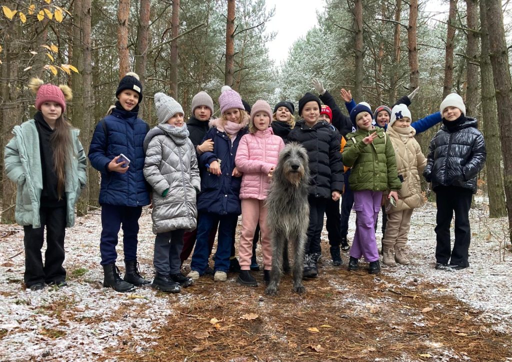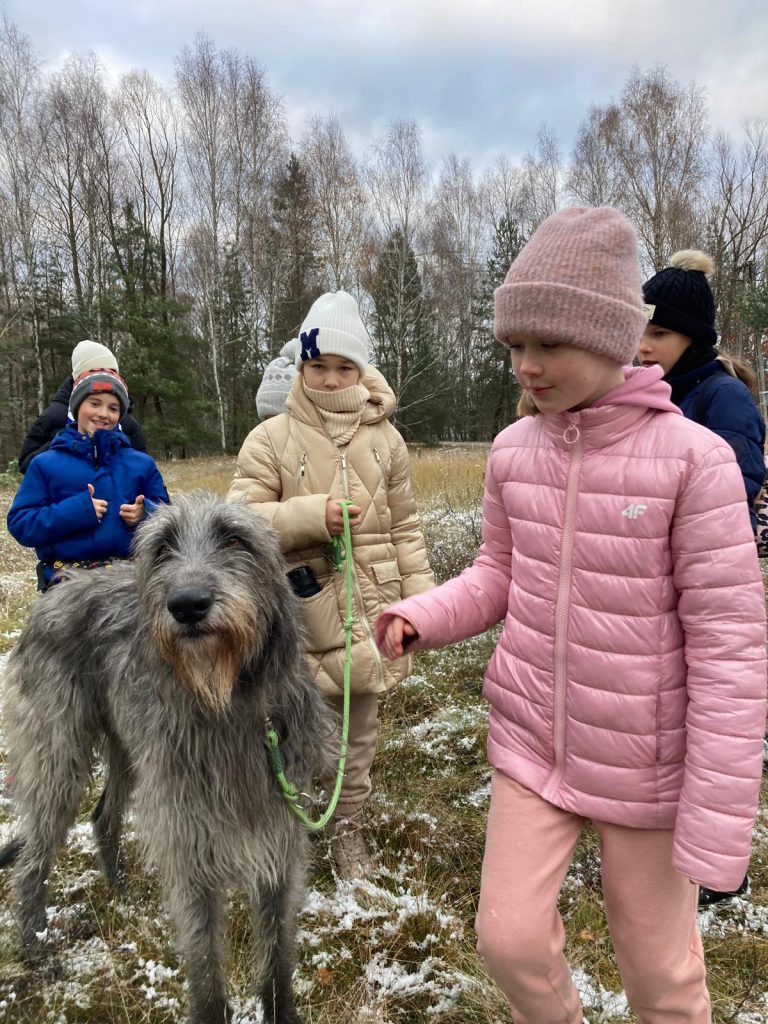Spotkanie rozpoczęło się od spaceru do pobliskiego lasu, gdzie uczniowie poznawali tajniki psich zachowań. Elton, jak zawsze, zachwycił wszystkich swoją umiejętnością wykonywania komend, takich jak „siad” i stanie na dwóch łapach. Była to doskonała okazja do rozmowy o odpowiedzialnej opiece nad zwierzętami i ich potrzebach.