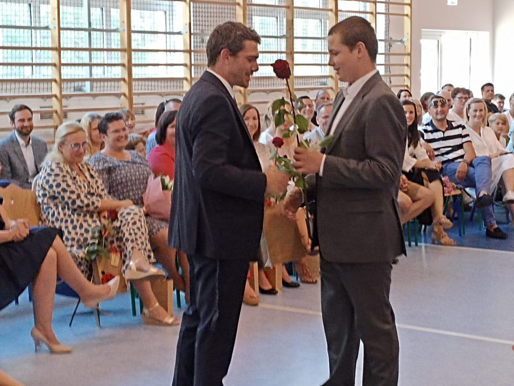 Uroczystość była okazją do nagrodzenia uczniów, którzy zakończyli edukację z najwyższą średnią, osiągnęli sukcesy na płaszczyźnie edukacyjne i sportowe oraz wyróżnili się w działaniach na rzecz wolontariatu. Podziękowania odebrali wspierający ich rodzice. Słowa wdzięczności kierowane były też dla nauczycieli i pracowników szkoły. Symbolicznym momentem było przekazanie przez ósmoklasistów ich młodszym kolegom sztandaru szkoły.