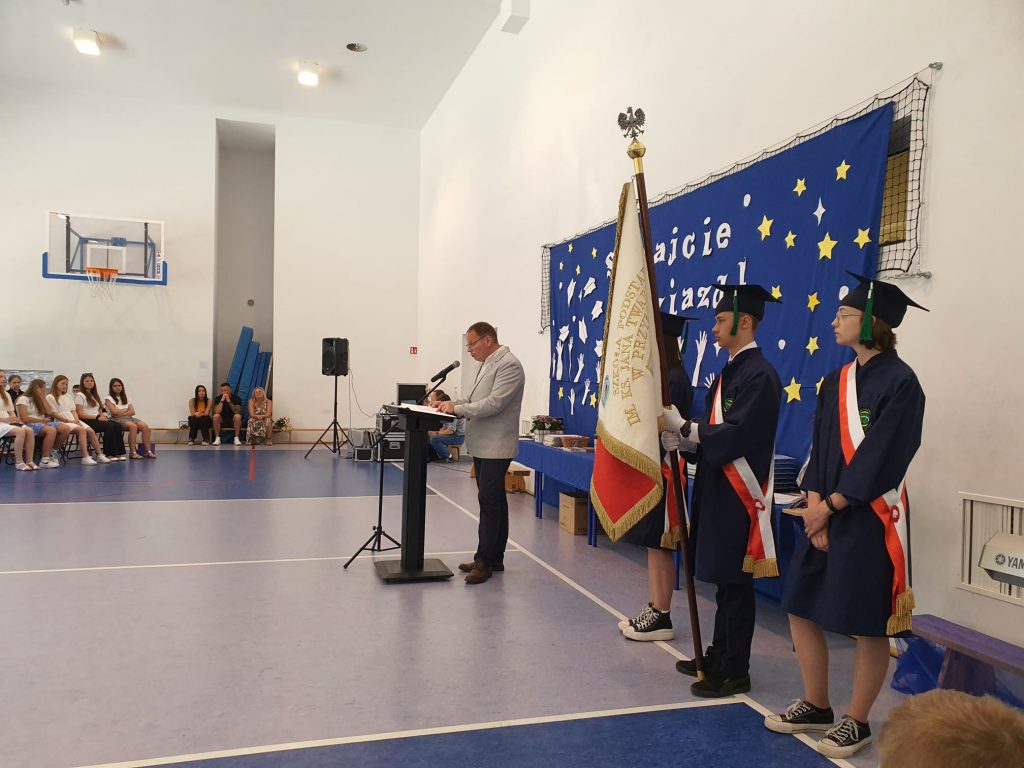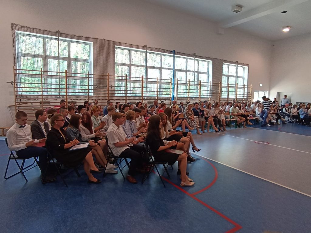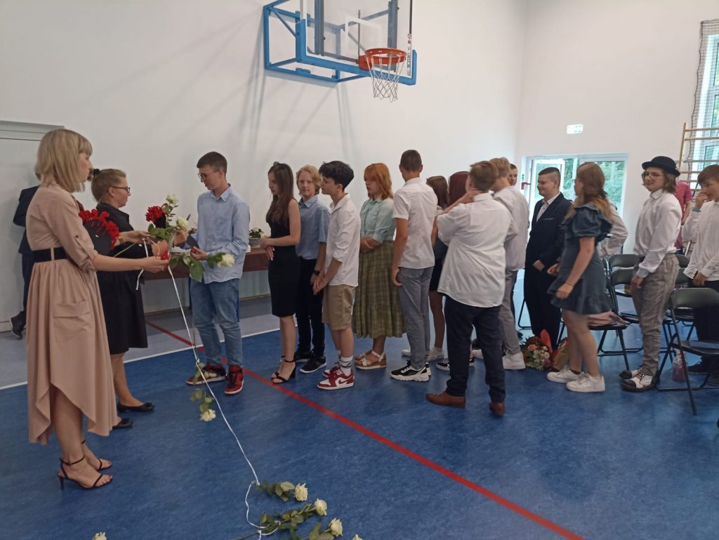 Uroczystość zakończenia ośmioletniej edukacji wieńczył dzień rozdania świadectw w obecności nauczycieli i rodziców oraz przybyłych gości: Zastępcy Wójta Paweł Zuehlke oraz Przewodniczącej Komisji Oświaty, Kultury, Zdrowia, Pomocy Społecznej i Sportu Karoliny Lachowicz.