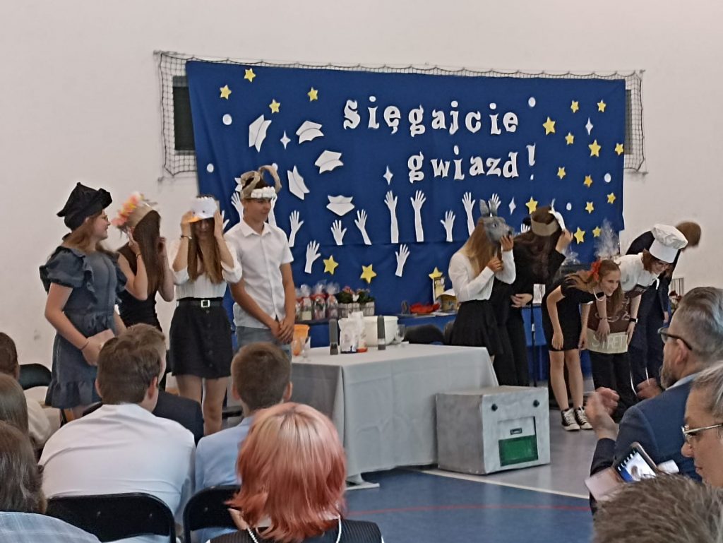 Błyskotliwym przemówieniem i spektakularnym tańcem żegnali najstarszych kolegów uczniowie z klasy siódmej i piątej. Natomiast ósmoklasiści żegnali się ze szkołą przywołując wspomnienia oraz dostarczając widzom dużą dawkę humoru, podczas której ujawniony został „przepis na ucznia” oraz w sposób śpiewający, szkolne zwyczaje uczących ich nauczycieli i pracowników szkoły.