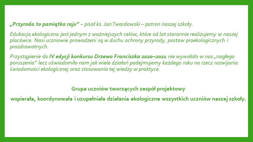 „PRZYRODA TO PAMIĄTKA RAJU” – PISAŁ KS. JAN TWARDOWSKI- PATRON NASZEJ SZKOŁY