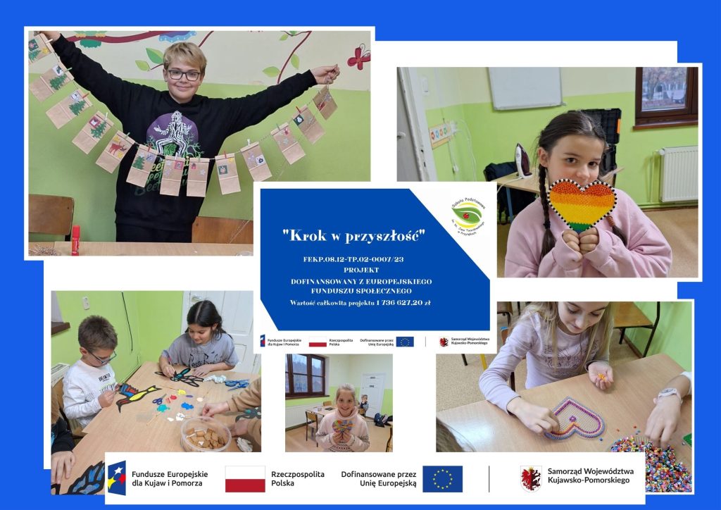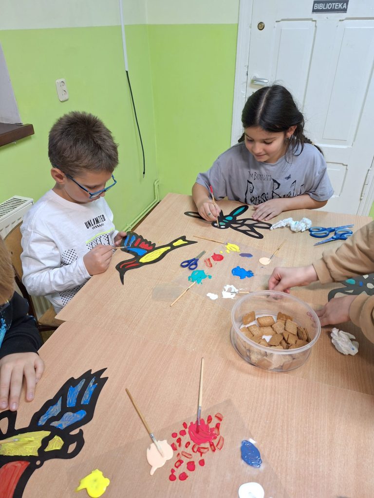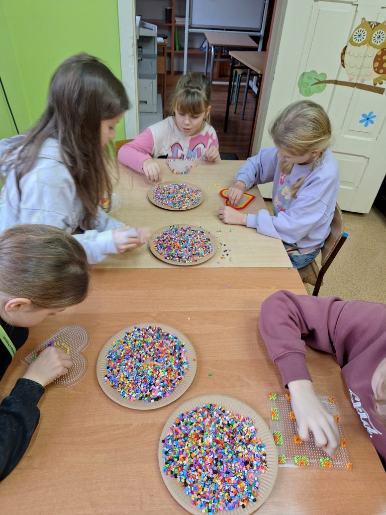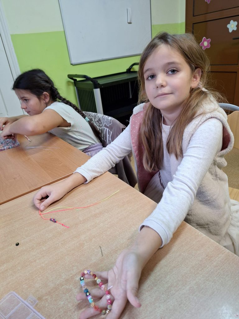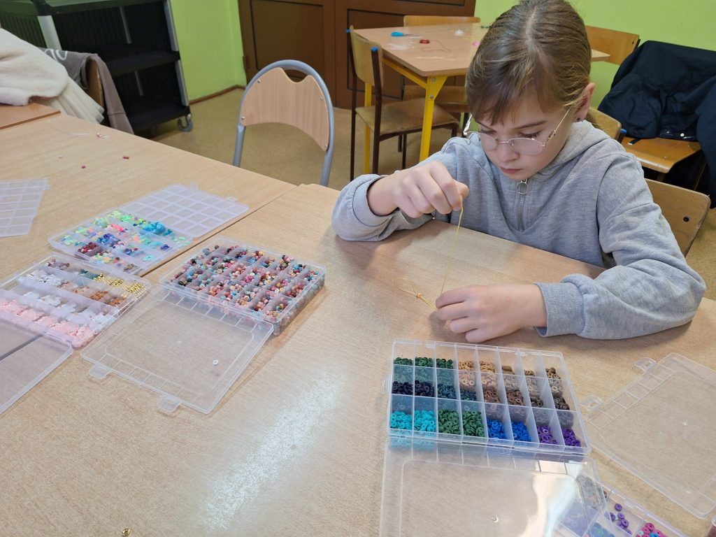 Na zajęciach techniczno-plastycznych oraz z rękodzieła uczniowie stworzyli: mozaiki z koralików, które wymagały precyzji i skupienia, oraz własną biżuterię, wykorzystując różnorodne materiały, co pozwoliło im wyrazić swój styl i kreatywność.