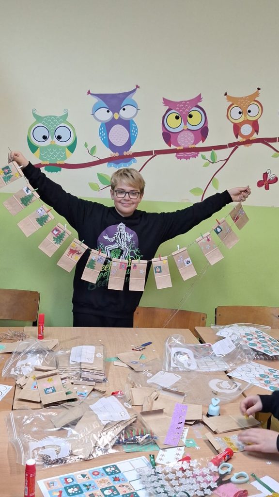 Podczas ostatnich zajęć z Rękodzieła i Szycia, prowadzonych przez panią Sylwię Żołnę, dzieci miały okazję wykazać się pomysłowością i zdolnościami manualnymi. Efektem ich pracy był piękny kalendarz adwentowy, który nie tylko wprowadza w świąteczną atmosferę, ale również stanowi wyjątkową ozdobę.
