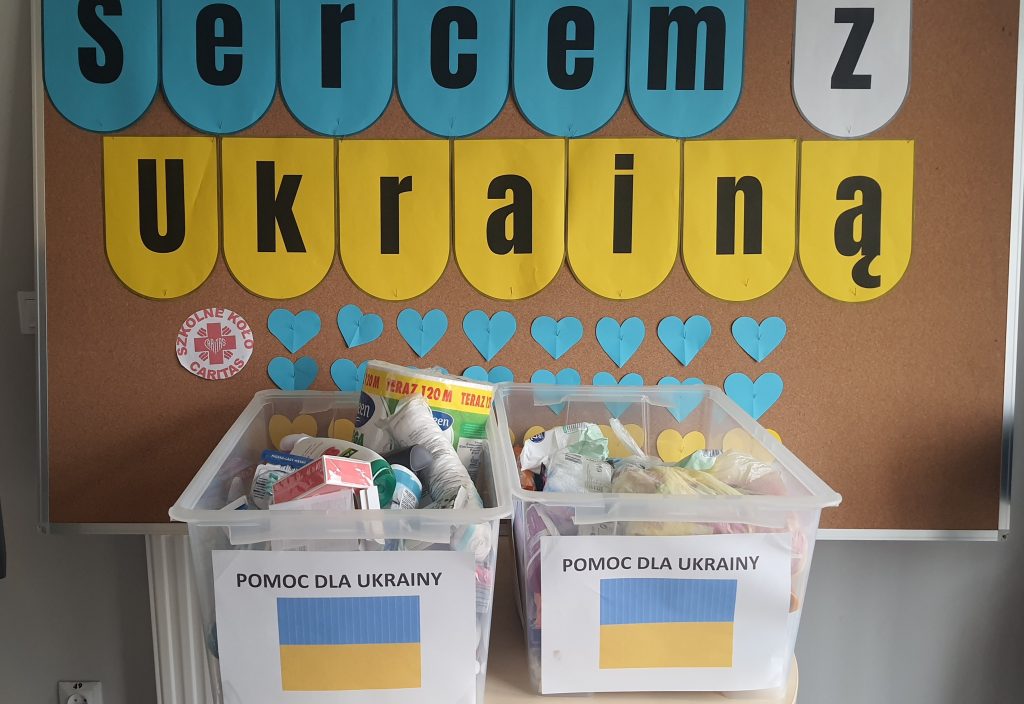 W ramach uroczystego apelu, szkolne Koło „Caritas” rozpoczęło tygodniową zbiórkę darów dla Ukrainy, ze szczególnym uwzględnieniem środków higieny osobistej i materiałów opatrunkowych- czyli obecnie najbardziej potrzebnych rzeczy w ukraińskich miastach. Dary będzie można przynosić do szkolnej sali gimnastycznej szkoły w Przyłękach do piątku tj. 03.03.2023. Nad całością uroczystości czuwała Anna Barbachen, nauczyciel historii.