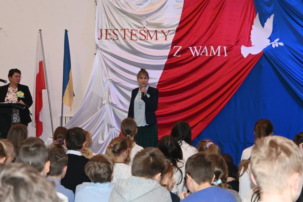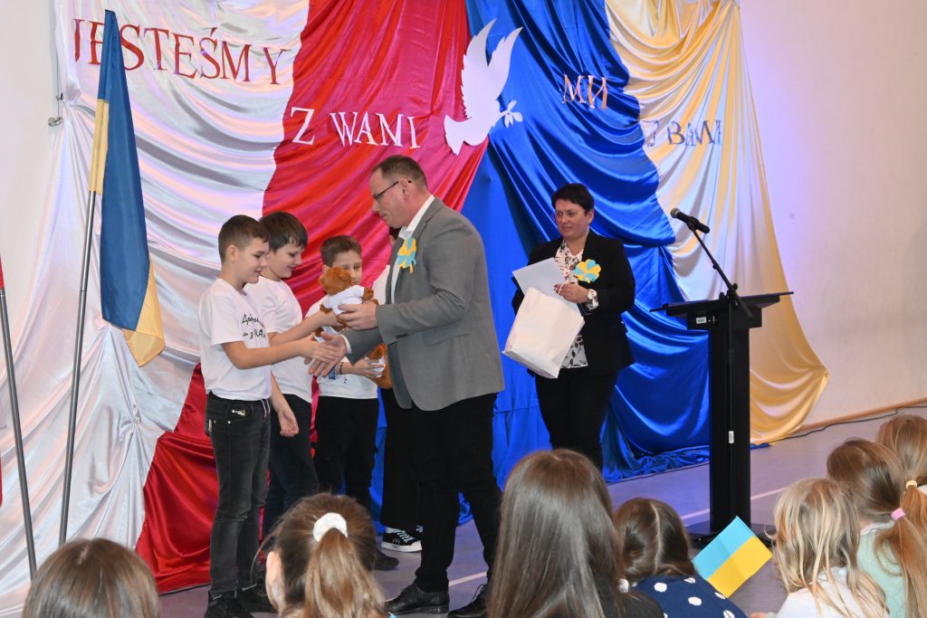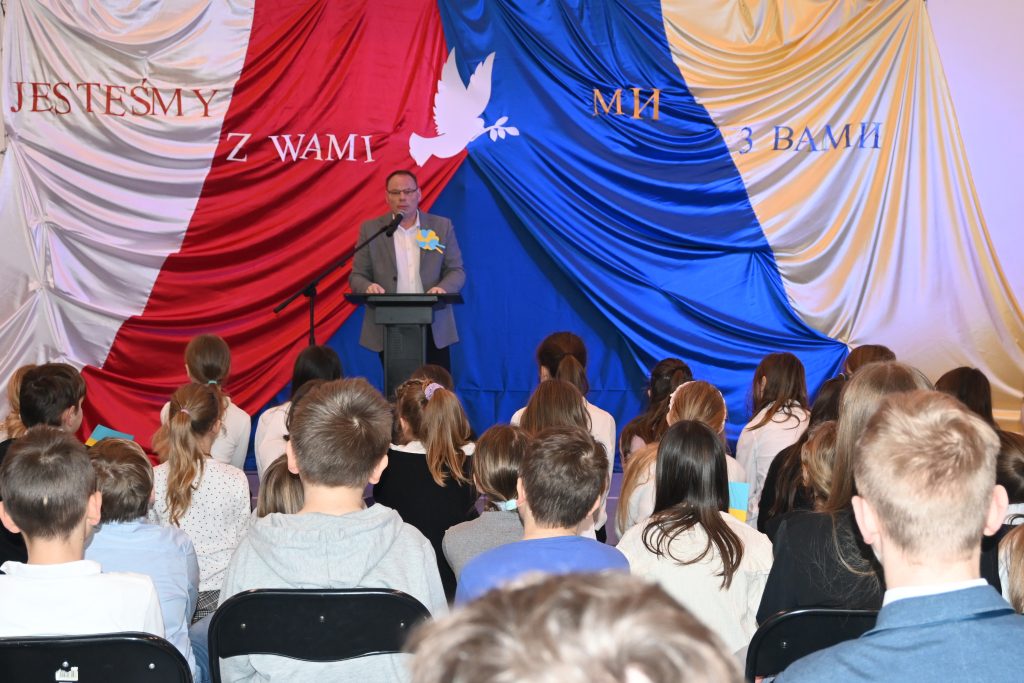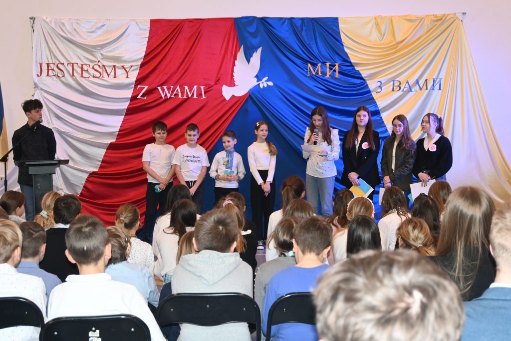 Podczas uroczystości uczniowie klas starszych wręczyli przyjaciołom z Ukrainy list wsparcia i jedności z narodem ukraińskim, pełnego nadziei, że ta wojna wkrótce się skończy.