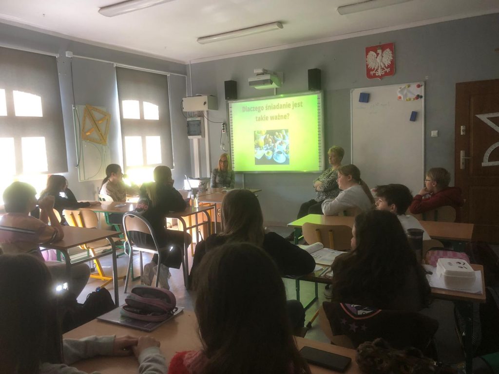 W klasach V i VI celem zajęć było poszerzenie utrwalenie wiedzy dotyczącej zdrowego odżywiania, uczniowie chętnie włączali się w dyskusje i zadawali pytania. W klasach VII i VIII realizowana była tematyka dotycząca powodów sięgania po substancje psychoaktywne związanych ze stresem.