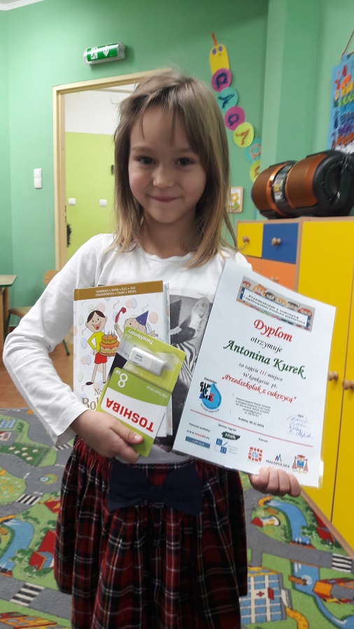 19 stycznia 2017 Tosia z zerówki zdobyła III miejsce w ogólnopolskim konkursie plastycznym “Przedszkolak z cukrzycą”. Wielkie gratulacje.