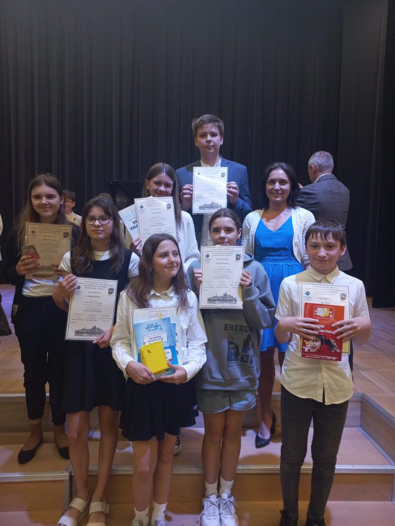 Bardzo dziękujemy naszym uczniom za zaangażowanie i czas poświęcony nauce, serdecznie gratulujemy zarówno im, jak i rodzicom oraz nauczycielom przedmiotowym. Wszystkim życzymy oczywiście dalszych sukcesów.