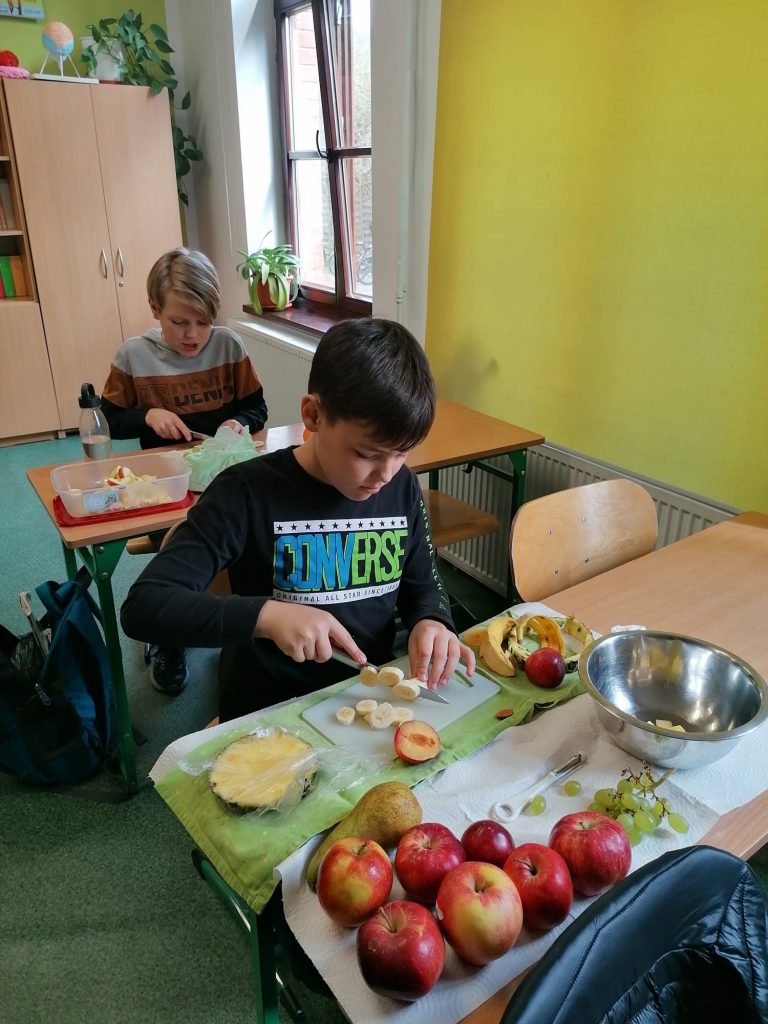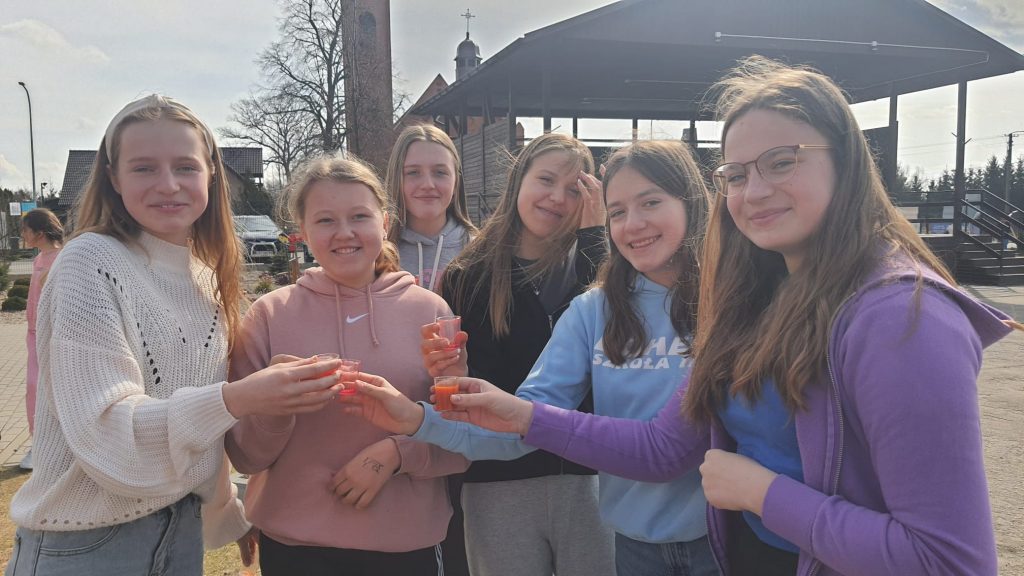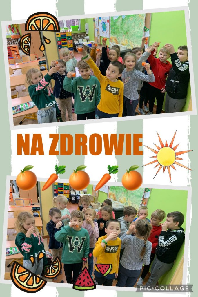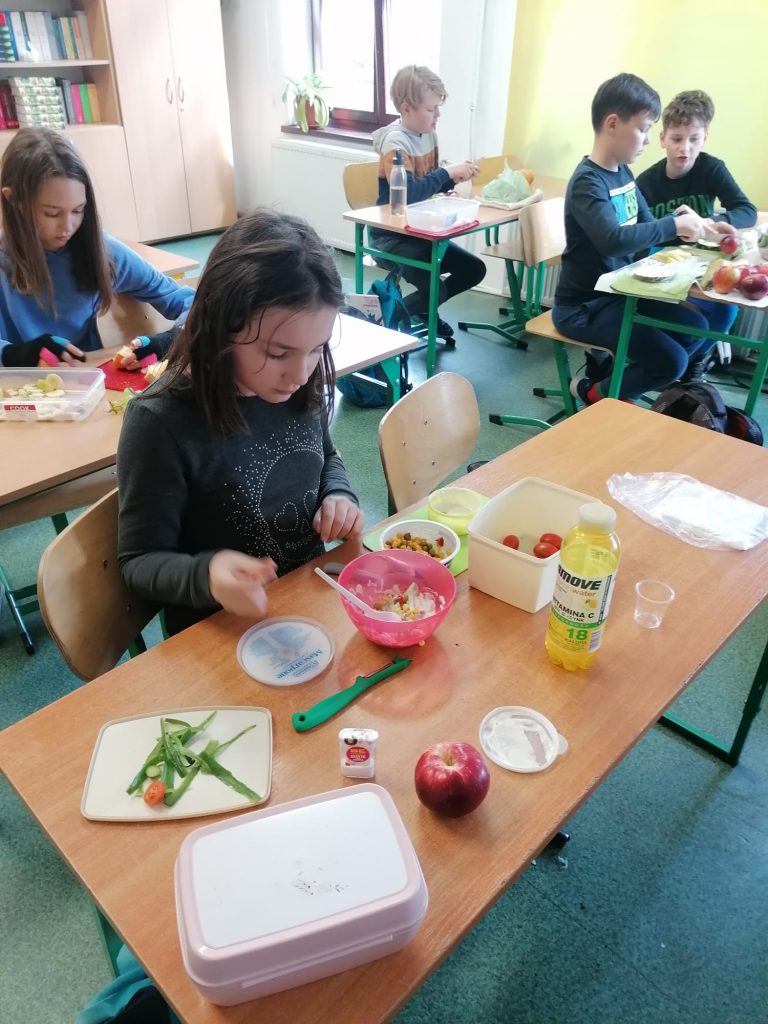 Uczniowie przygotowali odżywcze przekąski, sałatki owocowe i warzywne. Wspólnie spędziliśmy aktywną przerwę podczas, której tańczyliśmy zumbę. Wszyscy wznieśli toast za zdrowie nasze i naszej planety świeżo wyciskanymi skokami z owoców i warzyw.