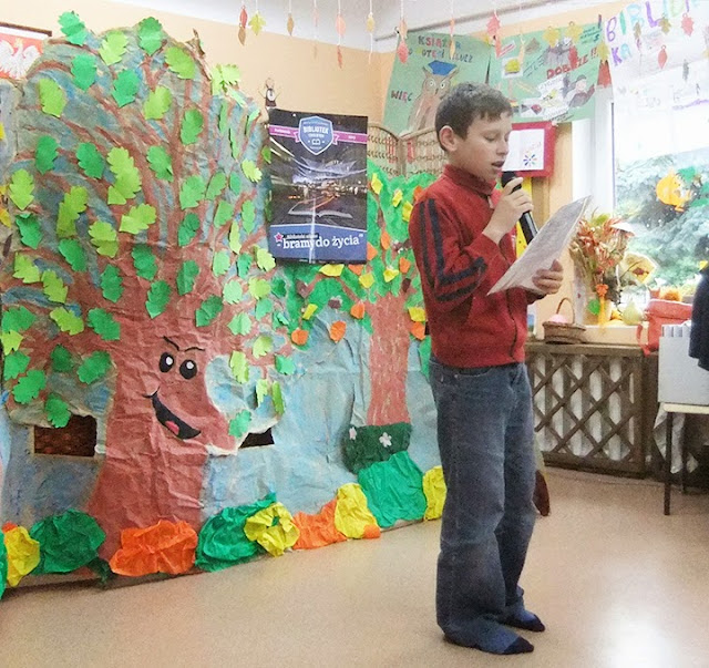 Laureatem konkursu został Jakub Osesek, który zaprezentował swoją pracę podczas akademii podsumowującej Miesiąc Bibliotek Szkolnych.