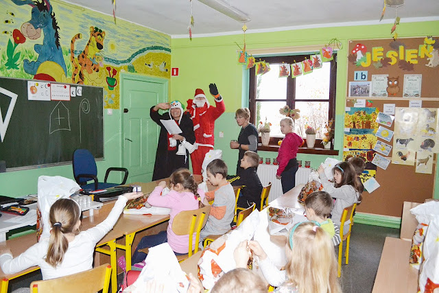 Wielka radość zagościła na twarzach uczniów naszej szkoły w dniu 6 grudnia. Tradycyjnie, jak co roku o tej porze, w Szkole Podstawowej im ks. Jana Twardowskiego w Przyłękach pojawił się Święty Mikołaj. Dotarł on do szkoły z workiem prezentów i słodkości. Dzieci powitały Go wierszami i piosenkami, a Święty – wyraźnie wzruszony – w zamian obdarował je prezentami.