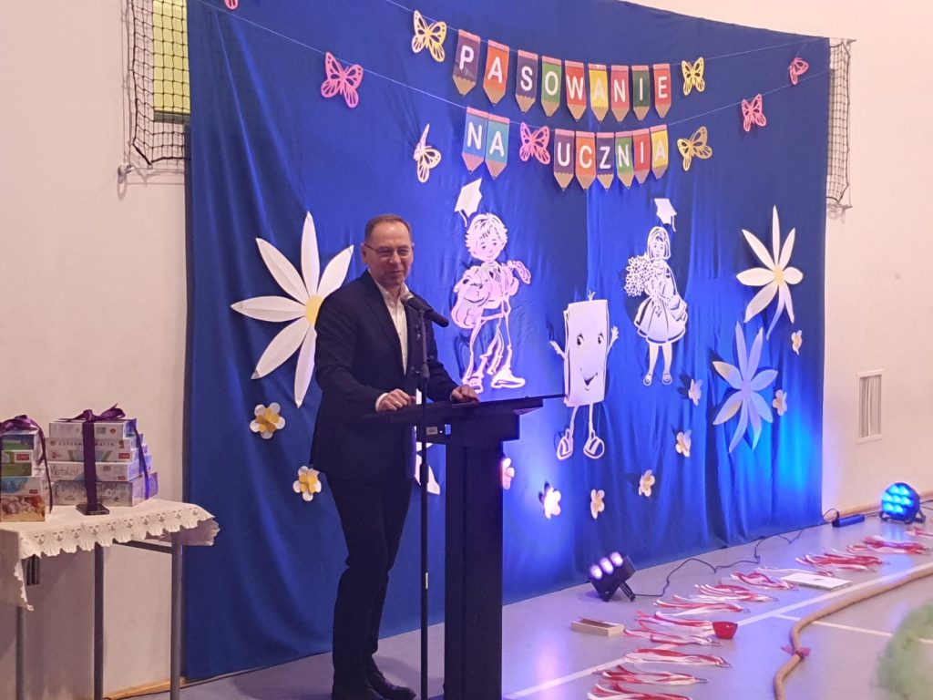 Szkoła Podstawowa im. ks. J. Twardowskiego w Przyłękach z roku na rok powiększa się pod względem liczby uczniów. ,,Nie jesteśmy już małą, wiejską szkołą, ale nadal dbamy o rodzinną atmosferę w naszej placówce” wybrzmiały słowa Pani Dyrektor na początku uroczystości pasowania klas pierwszych.