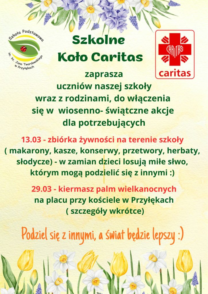 SZKOLNE KOŁO CARITAS ZAPRASZA DO UDZIAŁU W AKCJACH