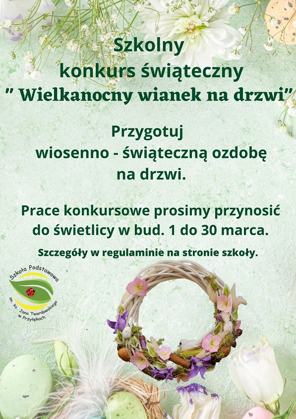 20 marca 2023 Świetlica szkolna ogłasza konkurs świąteczny. Zachęcamy do udziału. REGULAMIN-SZKOLNEGO-KONKURSU-SWIATECZNEGOPobierz