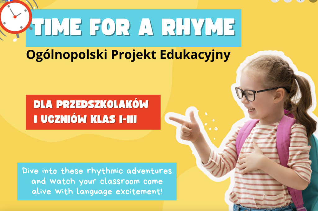 Uczniowie klas 0-3 naszej szkoły biorą udział w Ogólnopolskim Projekcie Edukacyjnym “TIME FOR A RHYME” organizowanym przez DIDACTO Polska!