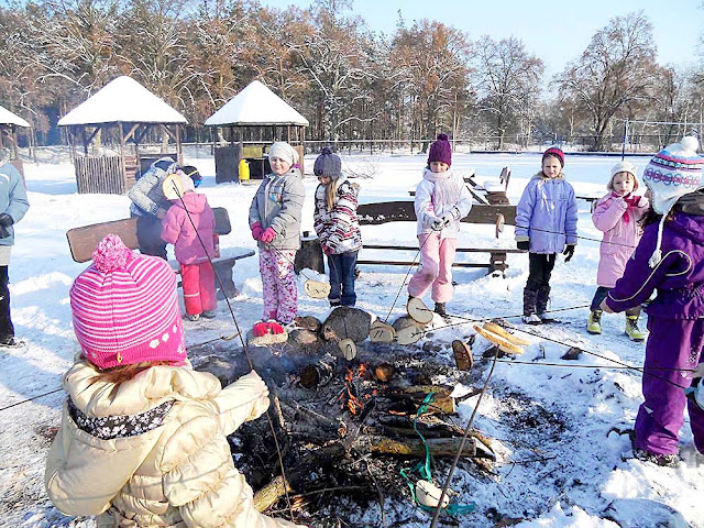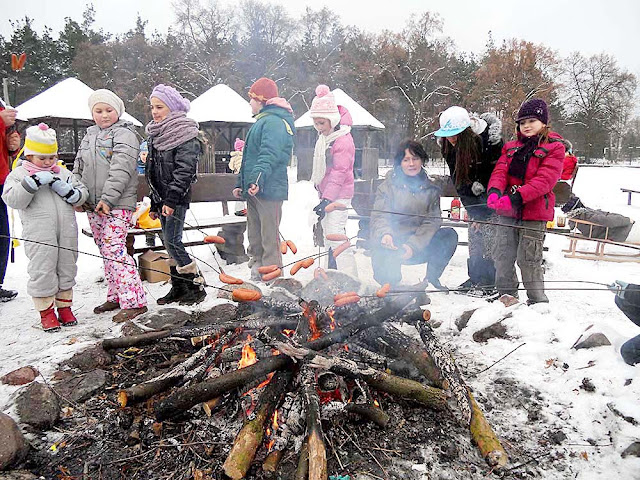 i wyprowadzać w pole podczas zabaw w podchody. Uwieńczeniem śniegowych zabaw była wspólna biesiada przy ognisku, pieczenie kiełbasek i chleba.