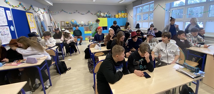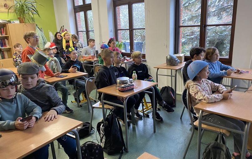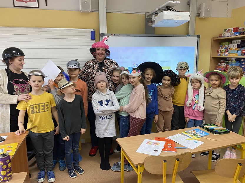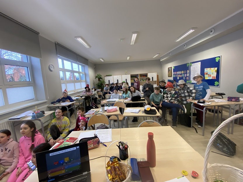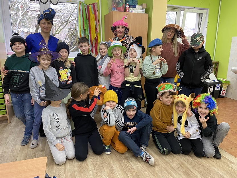 We wtorek założyliśmy przygotowane przez nas kreatywne nakrycia głowy, a w trakcie zajęć uczniowie brali udział w potyczkach matematycznych z wykorzystaniem Kahoot. Uczniowie zerówki i klas pierwszych bawili się na balu karnawałowym.