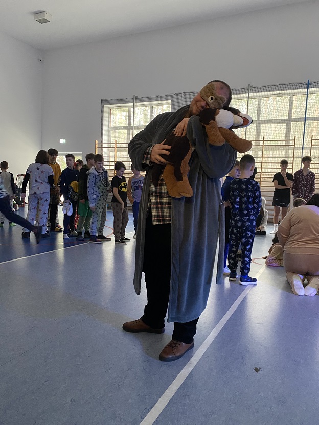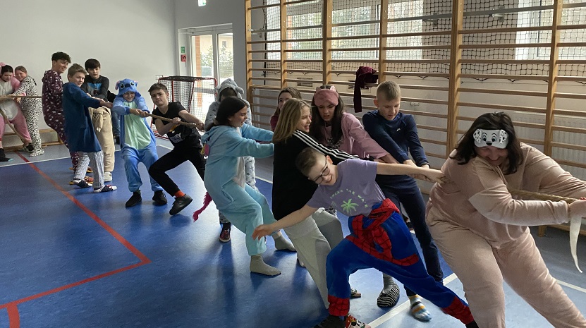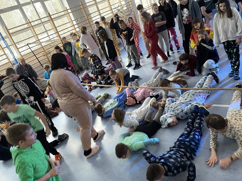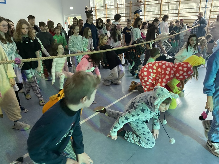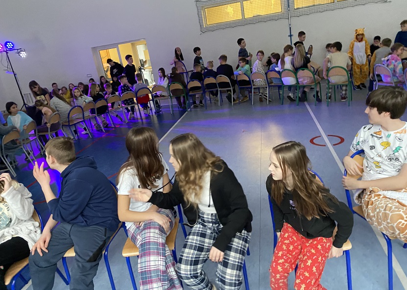 W środę mile widziane były piżamy i szlafroki, w których uczniowie klas 4-8 uczestniczyli w dyskotece – piżama party. W trakcie jej trwania odbyły się różne konkurencje, m.in. przechodzenie pod liną, przeciąganie liny, zabawa w krzesełka. W tym samym czasie klasy drugie i trzecie bawiły się na swoim balu karnawałowym.