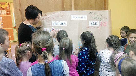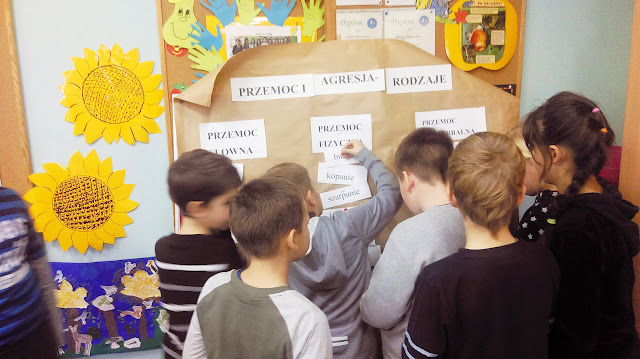 W klasach młodszych pedagog szkolny wraz z wychowawcami klas przeprowadził warsztaty podczas, których uczniowie mogli się dowiedzieć, czym różni się agresja od przemocy, oraz jakie zachowania są dobre, a jakie złe.