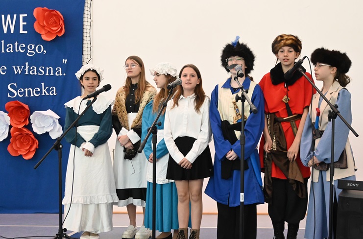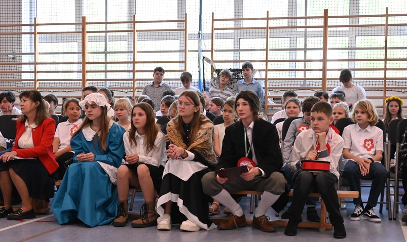 Wszyscy w apelowych strojach i biało-czerwonych akcentach z uwagą i zaciekawieniem uczestniczyliśmy w tym wyjątkowym dniu.
