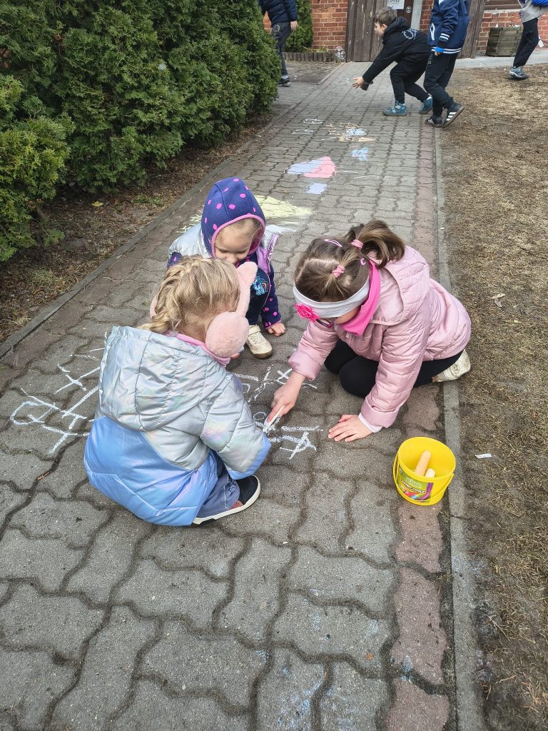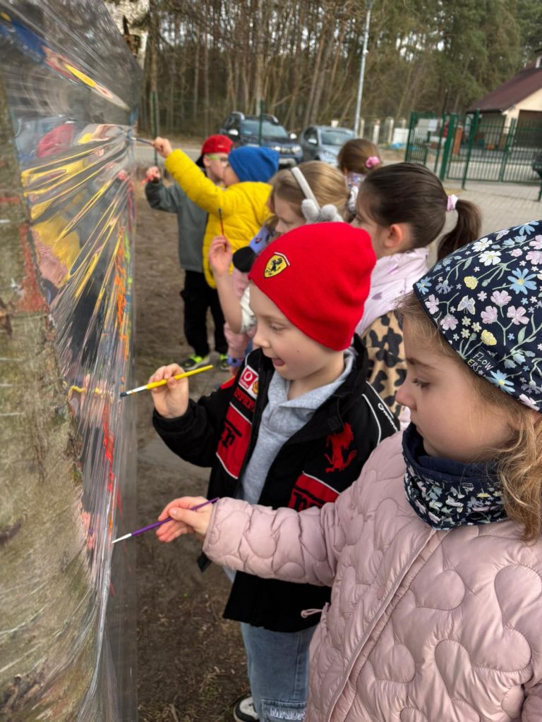 Uczniowie klas młodszych uczestniczyli w różnorodnych działaniach rozwijających kreatywność. Powstawały piękne plakaty dla Pani Wiosny, kolorowe rysunki kredą, a także prace tworzone na folii. Nie zabrakło również radosnej zabawy przy bańkach mydlanych oraz wiosennego bingo, które dostarczyło dzieciom wiele uśmiechu i pozytywnej energii.