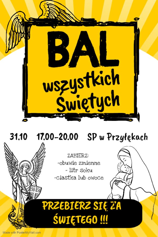 Skauci Europy oraz Ksiądz Proboszcz parafii w Przyłękach serdecznie zapraszają na doroczny Bal wszystkich Świętych. W tym roku odbędzie się 31 października o godz. 17.00 do sali gimnastycznej w SP w Przyłękach. Wszyscy Święci przybywajcie!