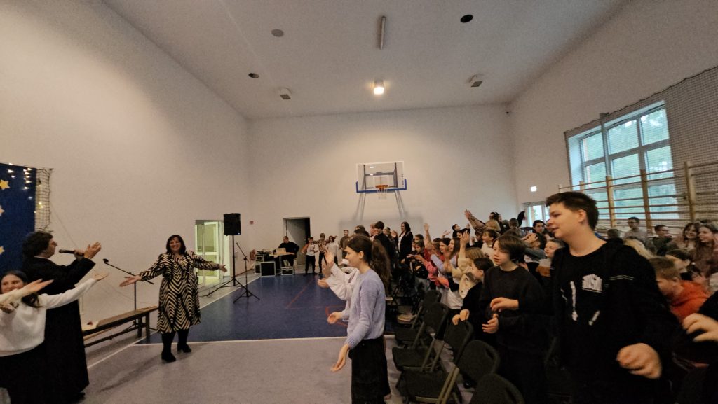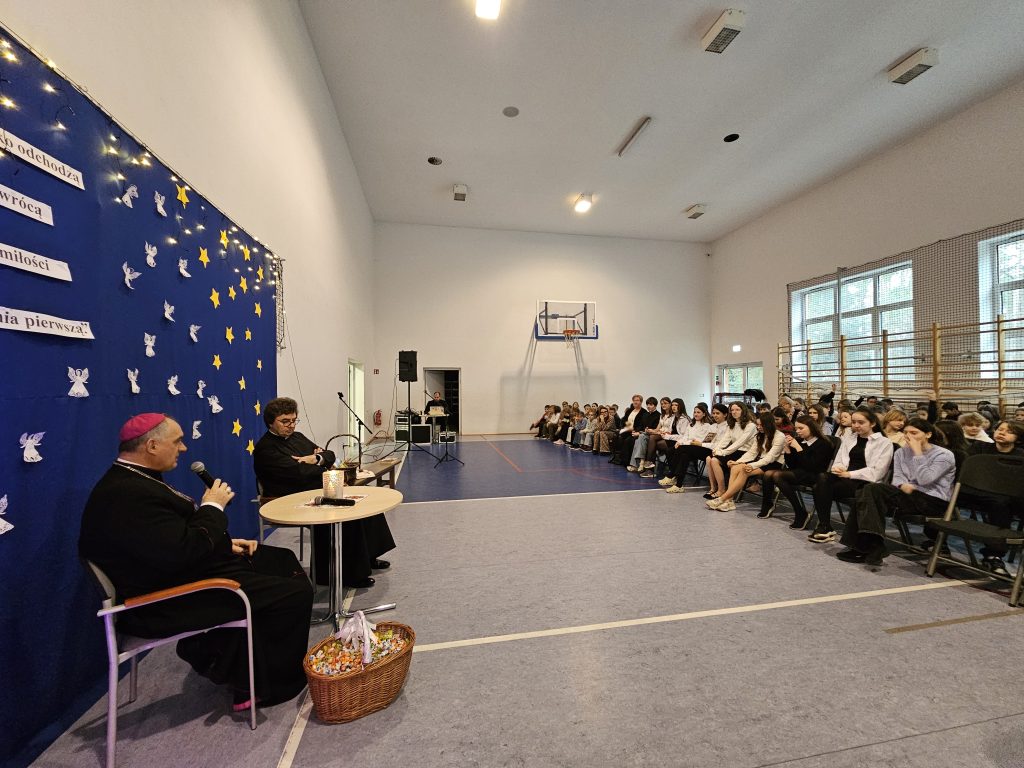 Po części artystycznej i przemówieniu, Ksiądz Biskup znalazł czas na rozmowę z uczniami i nauczycielami, odpowiadając na pytania i dzieląc się swoimi doświadczeniami. Jego otwartość i serdeczność sprawiły, że każdy czuł się wysłuchany i doceniony.