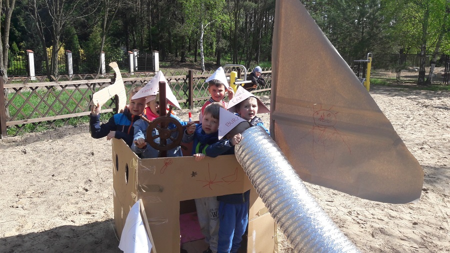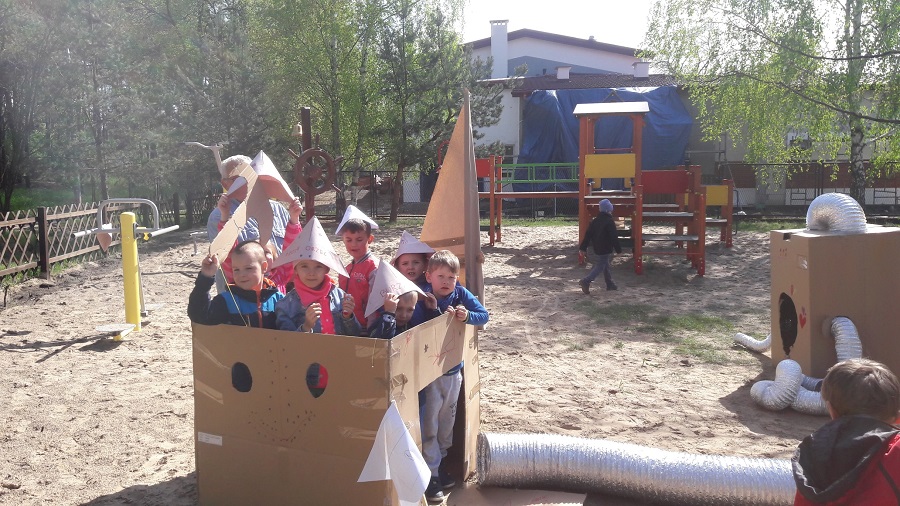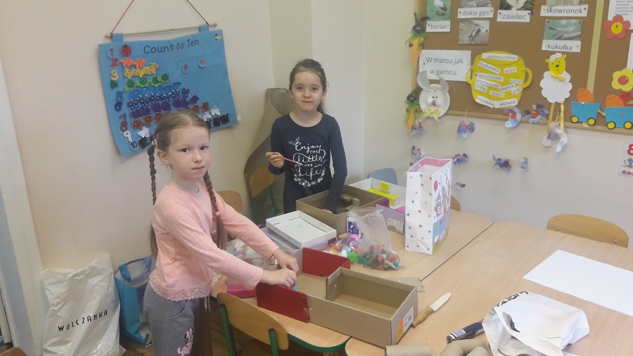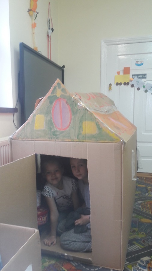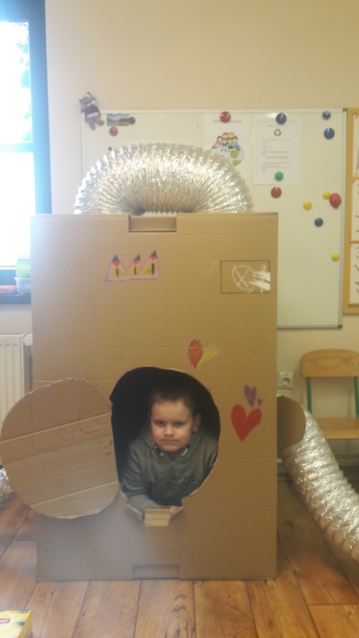 Z naszej sali zniknęły wszystkie klocki, auta, układanki, lalki i inne zabawki. W zamian zagościły kartony, rolki po papierze, wytłoczki po jajkach, papierowe torby, szmatki, nakrętki, butelki i inne „niepotrzebne rzeczy”. Celem projektu było rozbudzenie dziecięcej wyobraźni, aktywności twórczej, rozwijanie sprawności manualnej dzieci, a także zapoznanie z tematyką związaną z ochroną środowiska- recyklingiem. Dzieci poznały jak wielką siłę ma ich fantazja, jak wiele niepowtarzalnych rzeczy mogą zrobić sami.
