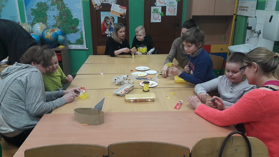 Dzieci wraz z rodzicami dekorowały również mazurki i wykonały ciekawe ozdoby wielkanocne. Zajęcia dały wszystkim uczestnikom wiele radości.
