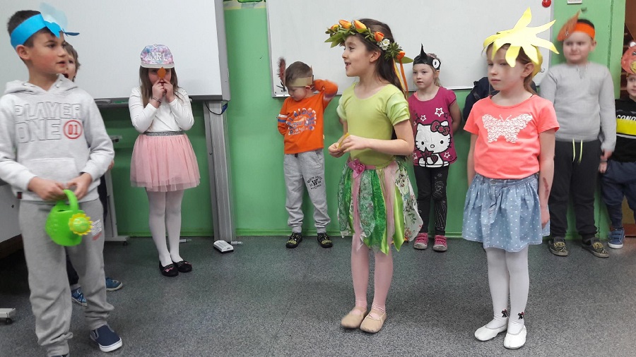 22.03 w czwartkowe popołudnie dzieci z zerówki zaprosiły swoich rodziców na przedstawienie pt. „Witaj wiosno”. Dzieci recytowały wiersze, śpiewały piosenki i zaprosiły swoich rodziców do tańca na „wiosennej łące”. Przedszkolaki musiały również zmierzyć się z zadaniami, które przygotowała dla nich pani Wiosna: rebusy zagadki, układanki literowe, matematyczne łamigłówki i inne.