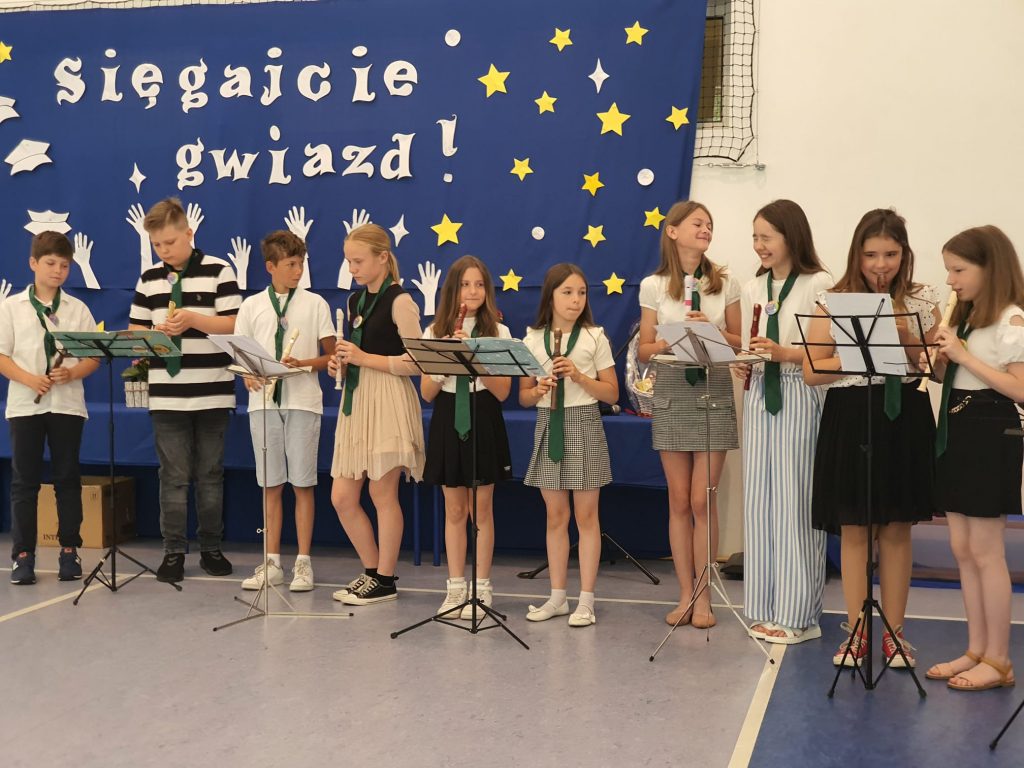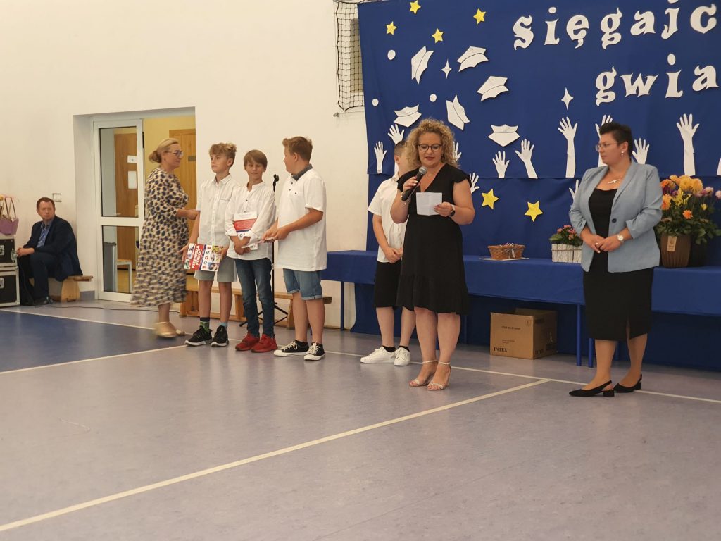 Podczas uroczystego apelu, w obecności gości: Zastępcy Wójta Paweł Zuehlke, Radnego Gminy Białe Błota Pana Karzysztofa Kocikowskiego oraz ks. Proboszcza Zdzisława Lahutty, uczniowie otrzymali świadectwa te z biało – czerwonym paskiem oraz te mniej spektakularne, ale równie ważne. Na pochwały zasługują wszyscy uczniowie, którzy opiekując się kolegami i koleżankami z Ukrainy, pomagając dzieciom z domów dziecka, zwierzętom w schroniskach, zdali najtrudniejszy egzamin z życia: bycie dobrym człowiekiem.