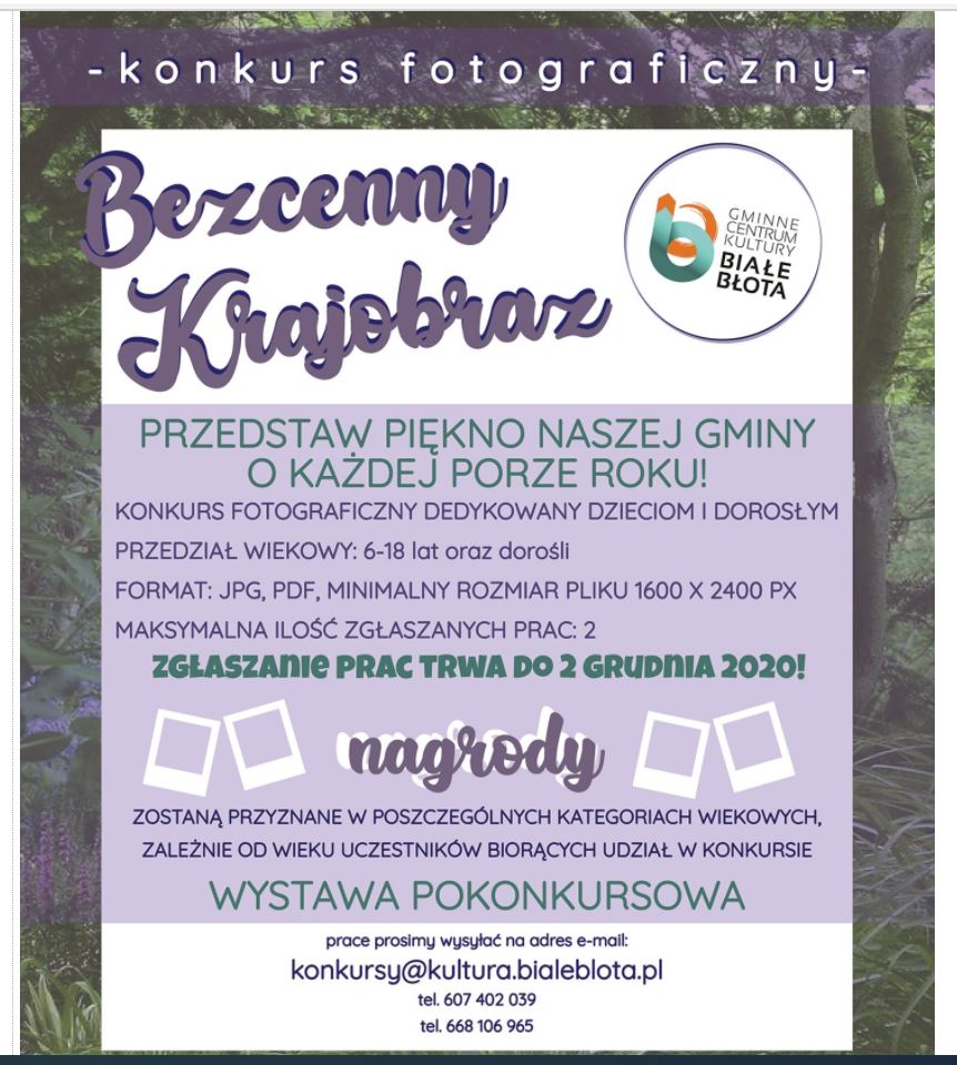 ZAPRASZAMY DO UDZIAŁU W KONKURSACH “BEZCENNY KRAJOBRAZ”- KONKURS PLASTYCZNY I FOTOGRAFICZNY.