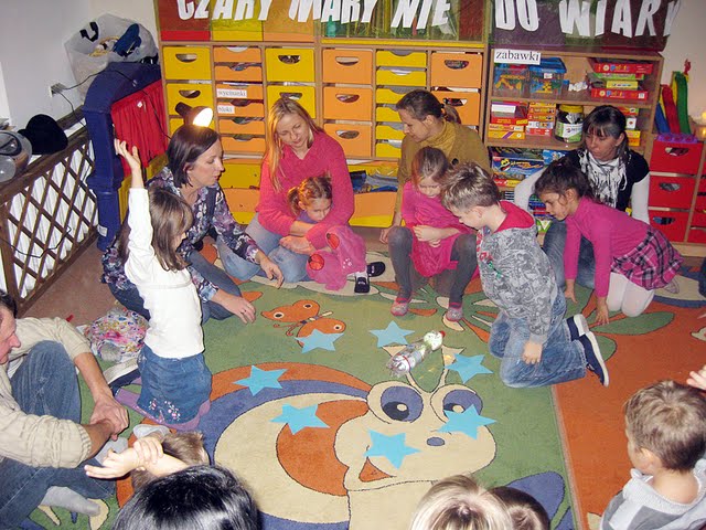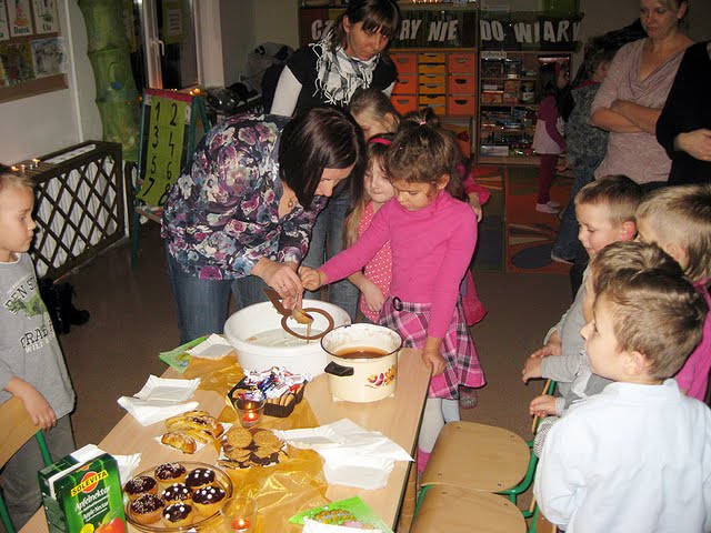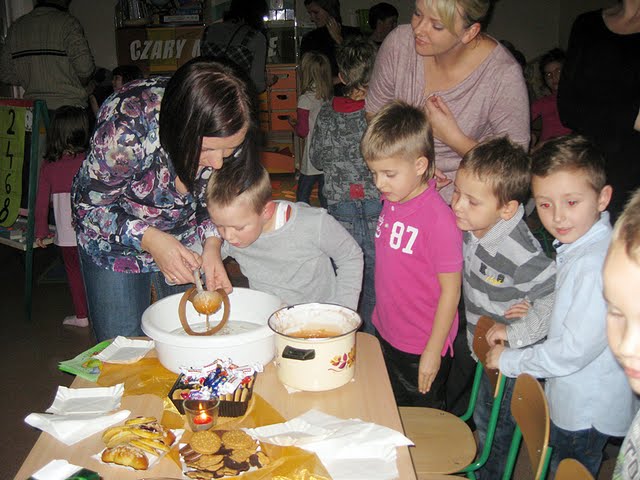 Zerówkowicze wraz z rodzicami bawili się przy wspólnych wróżbach. Nie obyło się bez odkrywania magicznych kubeczków, serduszek z imionami przyszłych żon czy mężów, cukierków z wróżbą i oczywiście lania wosku.