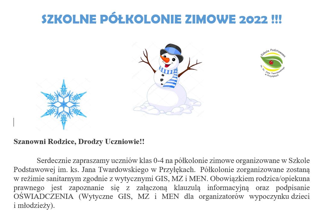DOKUMENTY DO POBRANIA DLA UCZESTNIKÓW PÓŁKOLONII ZIMOWYCH 2022