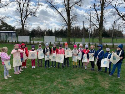 Z okazji Międzynarodowego Dnia Ziemi, dzieci z grupy “0” poznały zasady, dzięki którym mogą przyczynić się do polepszenia kondycji naszej planety. Aktywnie włączyły się w działalność ekologiczną, wraz z wychowawcą pozbierały śmieci w lesie koło szkoły oraz ozdobiły torby na zakupy, które zabrały do domów z przesłaniem “NIE KORZYSTAMY Z REKLAMÓWEK”.